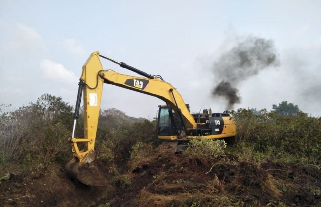 Tak lama kemudian, satu unit ekskavator tampak bergerak memasuki kawasan dan merintis jalur baru. Rantai besinya melindas semak dan anakan pohon, membuka akses di antara tegakan yang masih rapat. Tanah gambut belum sempat digali, namun arah bukaan sudah mengarah ke petak lindung dalam wilayah kelola.