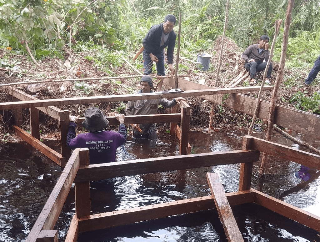 Over the last 1.5 years, KPSHK has made various efforts to improve peat ecosystems in four village forest areas in Kahayan Hilir District, Pulang Pisau Regency, Central Kalimantan, through the Integrated Management of Peat Forest Ecosystems program. Basic studies of hydrology, biodiversity and land use are one of the activities that have been carried out. KPSHK has determined the distribution of canal blocking points in four Village Forests based on baseline data.